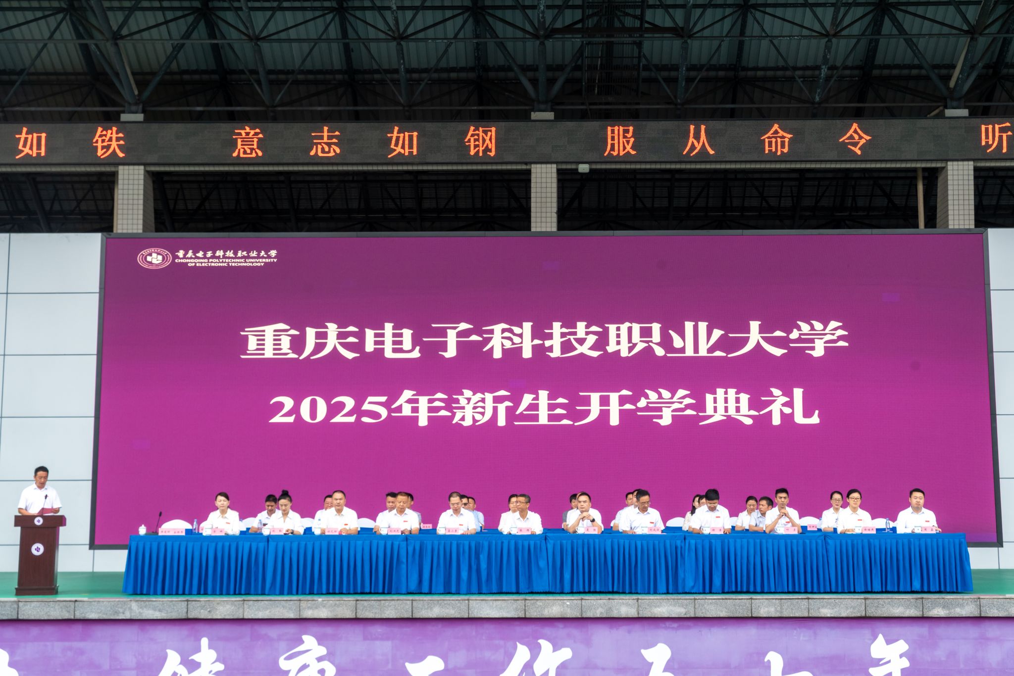 2025年9月30日上午,重庆电子科技职业大学2025年新生开学典礼在大学城校区奕晖运动中心举行,学校官微视频号同步直播。两江新区教学点新生和社会各界人士线上同步观看。学校全体领导、党委常委、各职能部门负责人、各二级学院党总支书记、院长、学管科长、新生辅导员、2025级全体新生及2024-2025学年“卓越技术技能人才”获奖者代表、“国家奖学金”获奖者代表参加了典礼。大会由党委常委、副校长黄爱明主持。