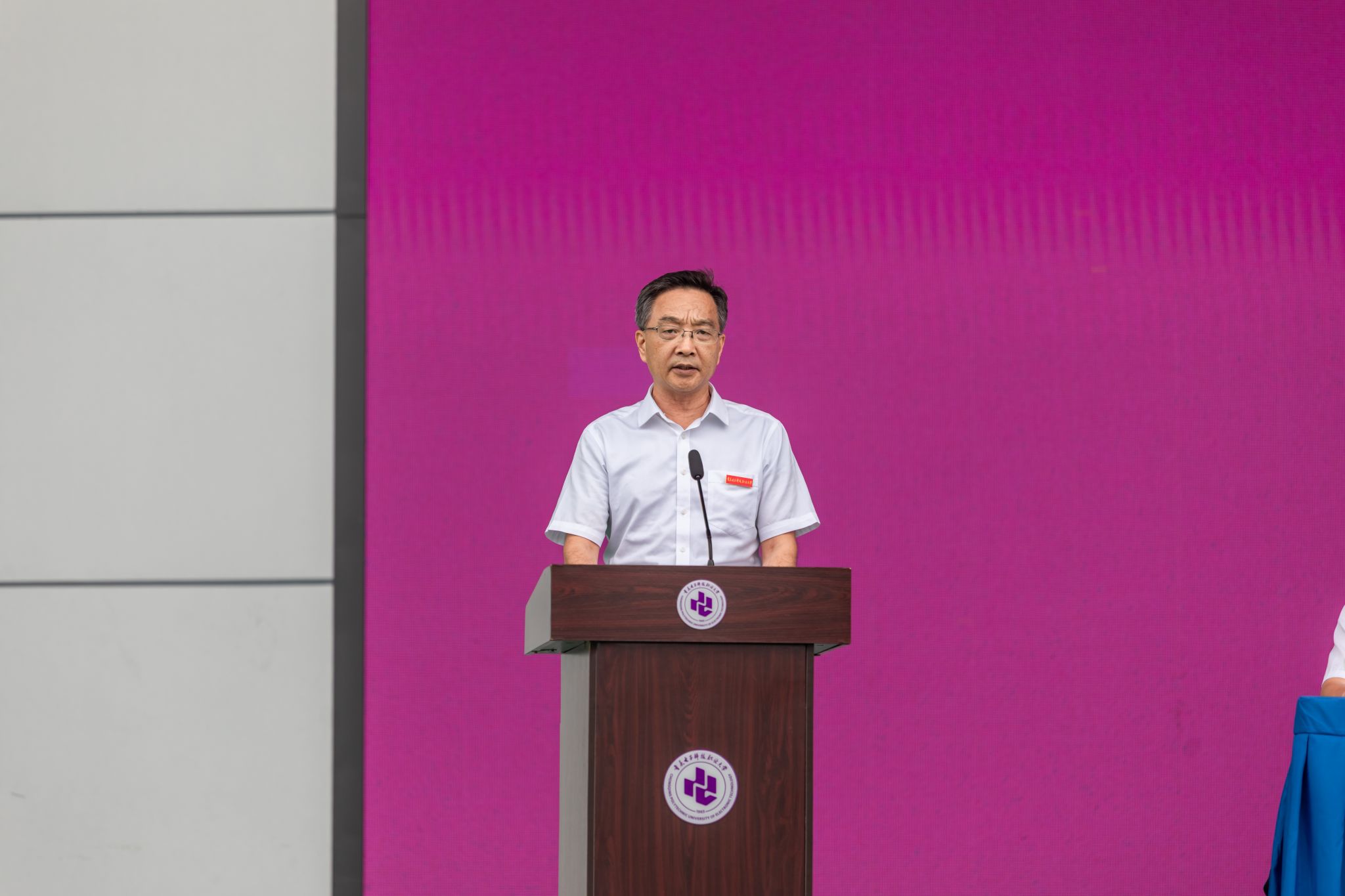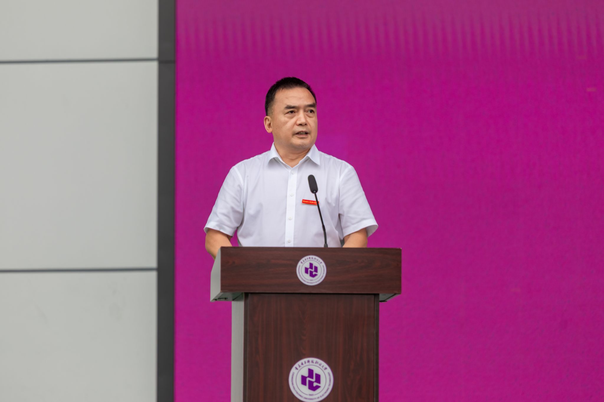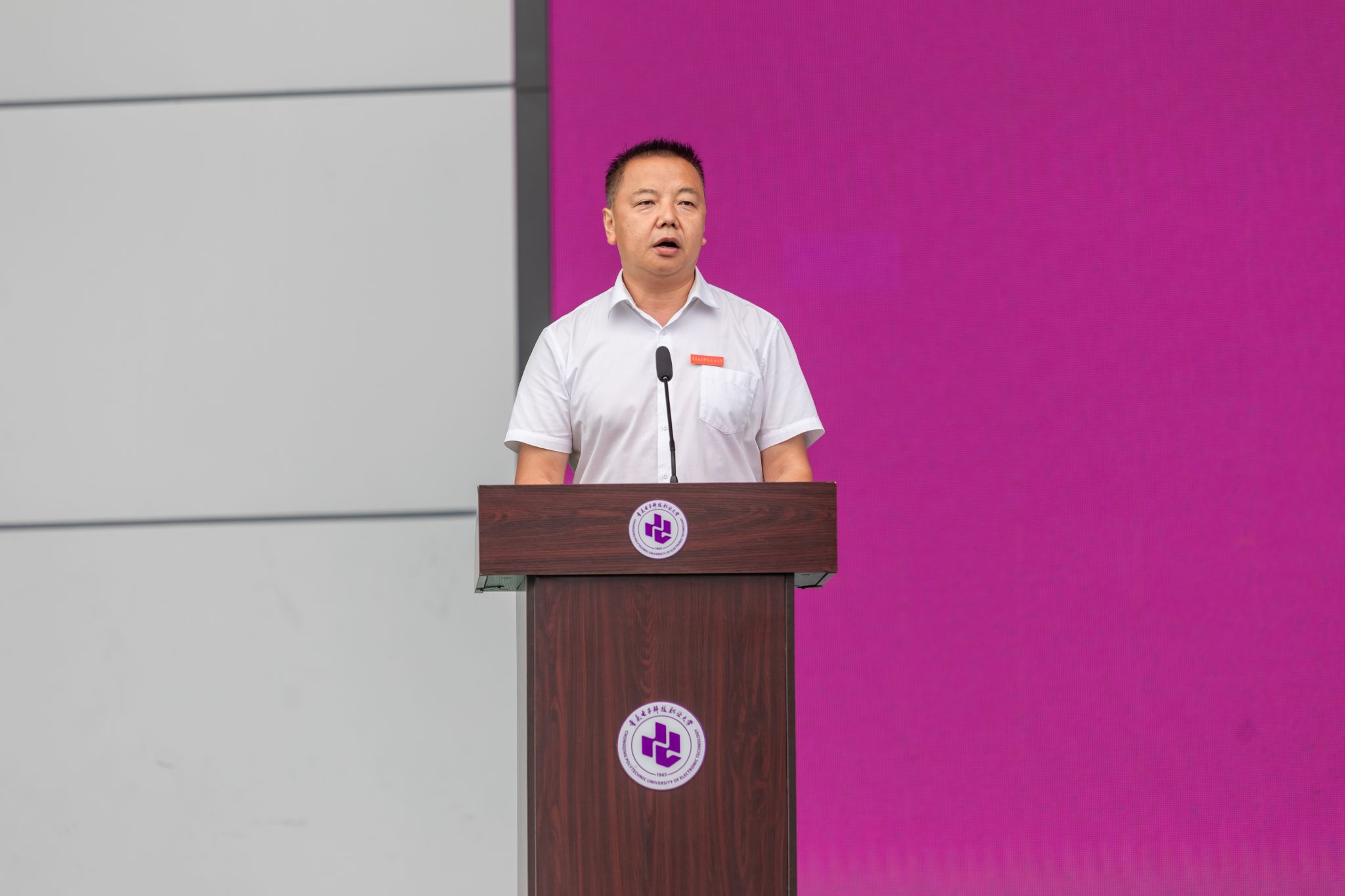 聂强介绍了学校建校六十年来的发展成就与本年度招生情况,着重指出学校在高素质技术技能人才培养方面取得的显著成效。随后,聂强校长与全体新生分享三点思考:一是以“技”为舟,追溯技术文明本源,培养匠心;二是以“德”为舵,坚守职业道德,成为有温度的技术人;三是以“创”为帆,勇于创新,在时代浪潮中突破自我。最后,他祝愿同学们在重电的求学时光中,扎实走好“技进乎道、德润于心”的成长之路。