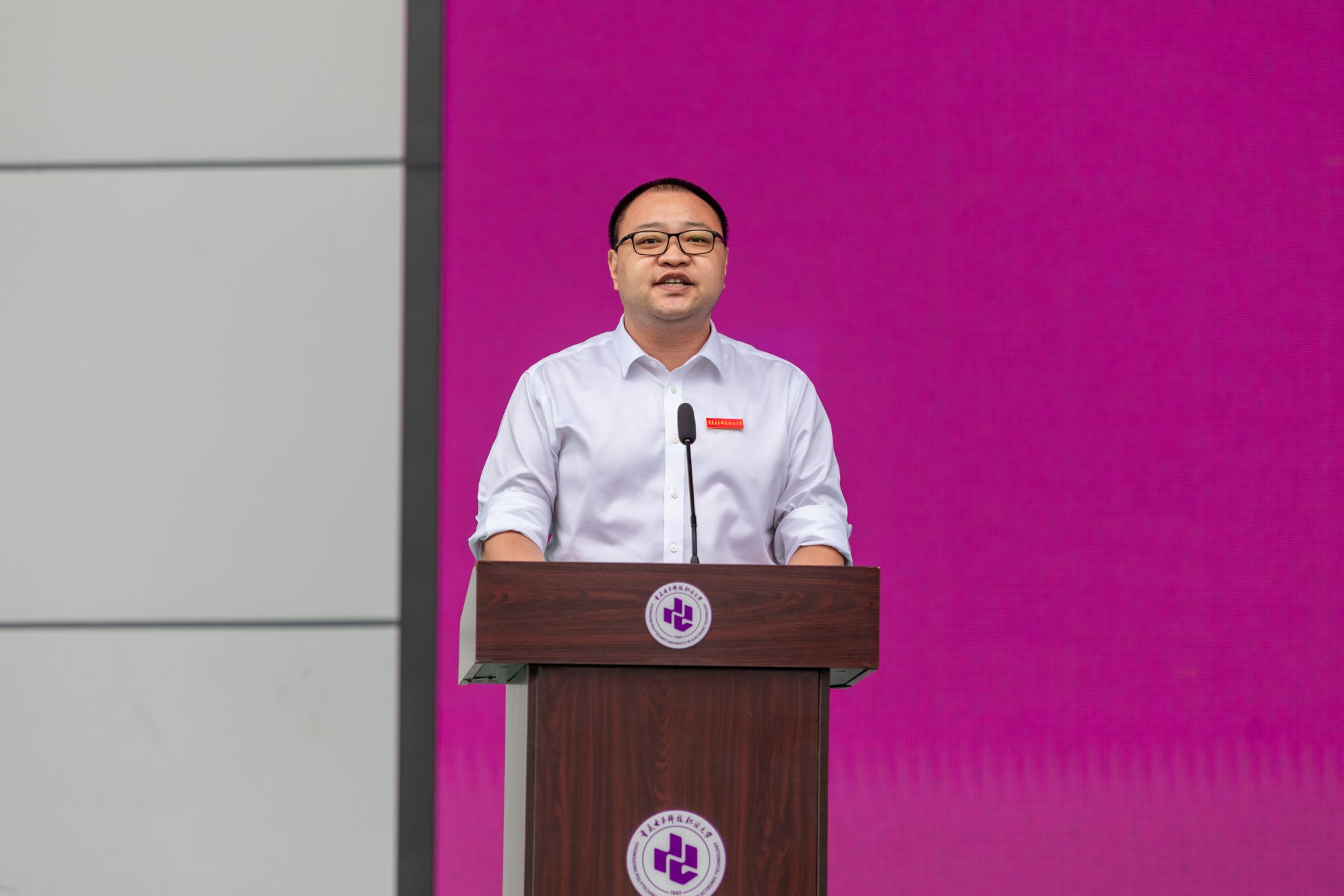 教师代表通信工程学院郭俊杰老师以饱满的热情,分享了带领学生团队勇夺“中国软件杯”全国总决赛特别奖、创造重庆高校新纪录的拼搏故事,并讲述了优秀毕业生罗刚跻身行业顶尖企业的成长经历。他勉励新生以勤勉为基、以匠心为魂、以梦想为帆,在重电这片沃土中书写属于自己的崭新篇章,以青春之力共筑“咱们”的荣耀。