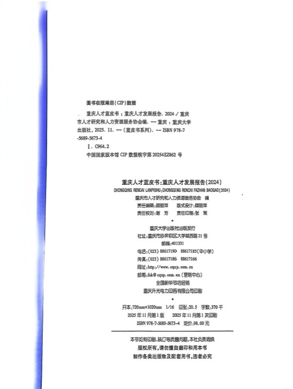 新闻多一点:《重庆人才蓝皮书·重庆人才发展报告》是由重庆市委、市政府相关部门指导权威机构编纂的年度性智库报告,该报告立足重庆、放眼全国,系统梳理全市人才队伍建设现状,深入剖析关键问题,前瞻预测发展趋势,是市委、市政府及各级部门制定人才政策、优化人才环境的重要依据。《重庆人才蓝皮书·重庆人才发展报告》被“政、产、学、研、用”界誉为观察重庆人才发展的“风向标”和“晴雨表”。