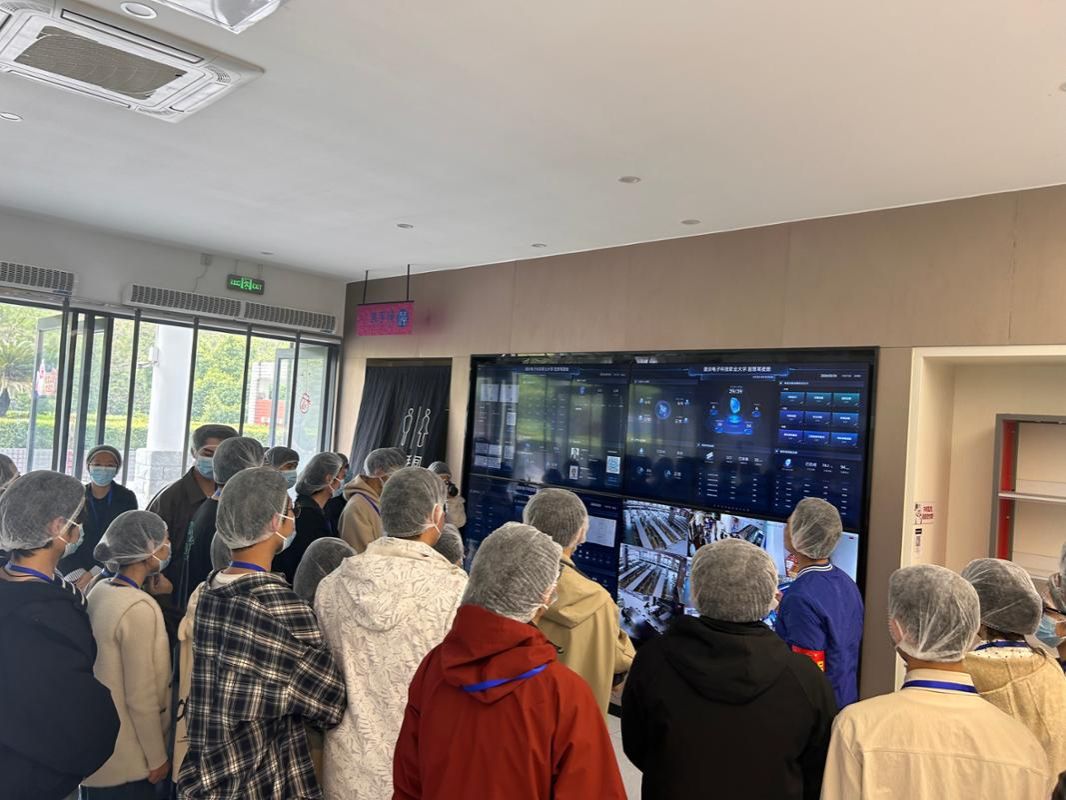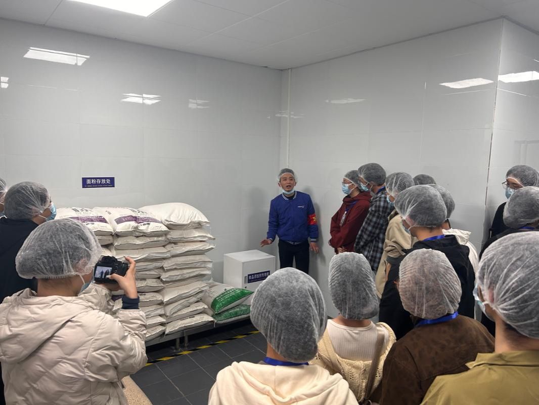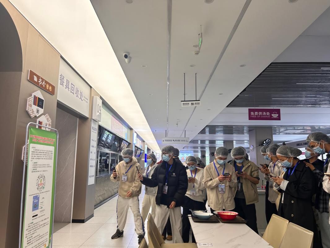 在食堂工作人员的带领下,同学们有序参观了食堂大厅、智慧食堂驾驶舱、食品留样间、食材库房、食品加工间以及洗碗间等核心区域。食堂工作人员全程细致讲解,从食材入库验收、分类储存,到食品加工制作、餐具清洗消毒,再到食品留样规范、智慧化监管流程,每一个环节都向同学们清晰展示。参观过程中,工作人员还结合现场场景,对同学们开展了“光盘行动”主题教育,倡导大家珍惜粮食、杜绝浪费,养成文明节约、绿色健康的就餐习惯,共同营造良好的校园餐饮氛围。