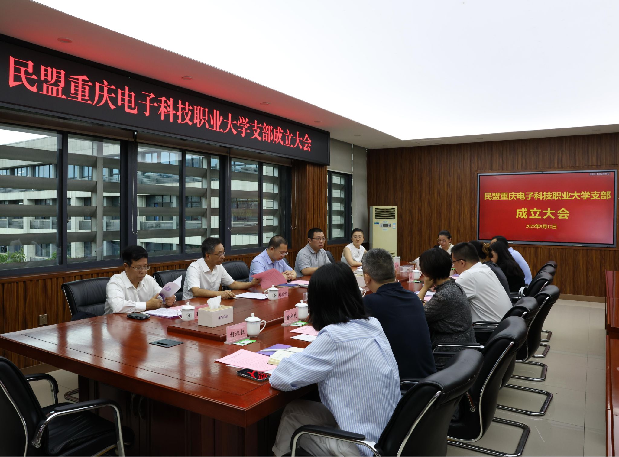2025年9月12日上午10:00,民盟重庆电子科技职业大学支部成立大会在学校博德楼五楼会议室顺利召开。民盟九龙坡区委会专职副主委马力,学校党委副书记龚小勇、副校长刘成俊,党委常委、党委统战部部长疏勤,九三学社重电支社主委王正勇,以及民盟重庆电子科技职业大学支部全体盟员、拟发展盟员共同参会。大会由学校党委常委、党委统战部部长疏勤主持。