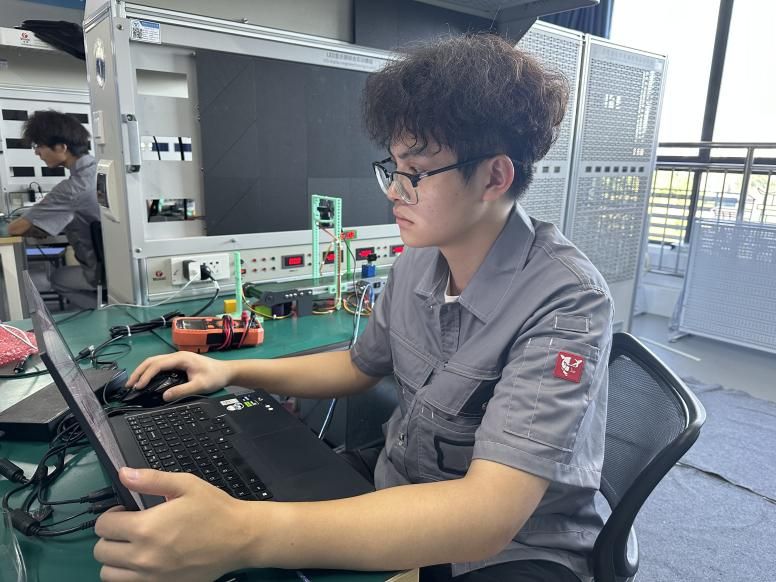 在日常训练中,肖万霖充分利用基地优质资源,在LED灯具制作、显示系统装调等核心模块反复打磨技能。无论昼夜,实训区内总能看到他专注训练的身影。面对技术难点,基地专家团队也给予精准指导,从技术标准解析到操作流程优化,全方位帮助他竞技能力水平提升。