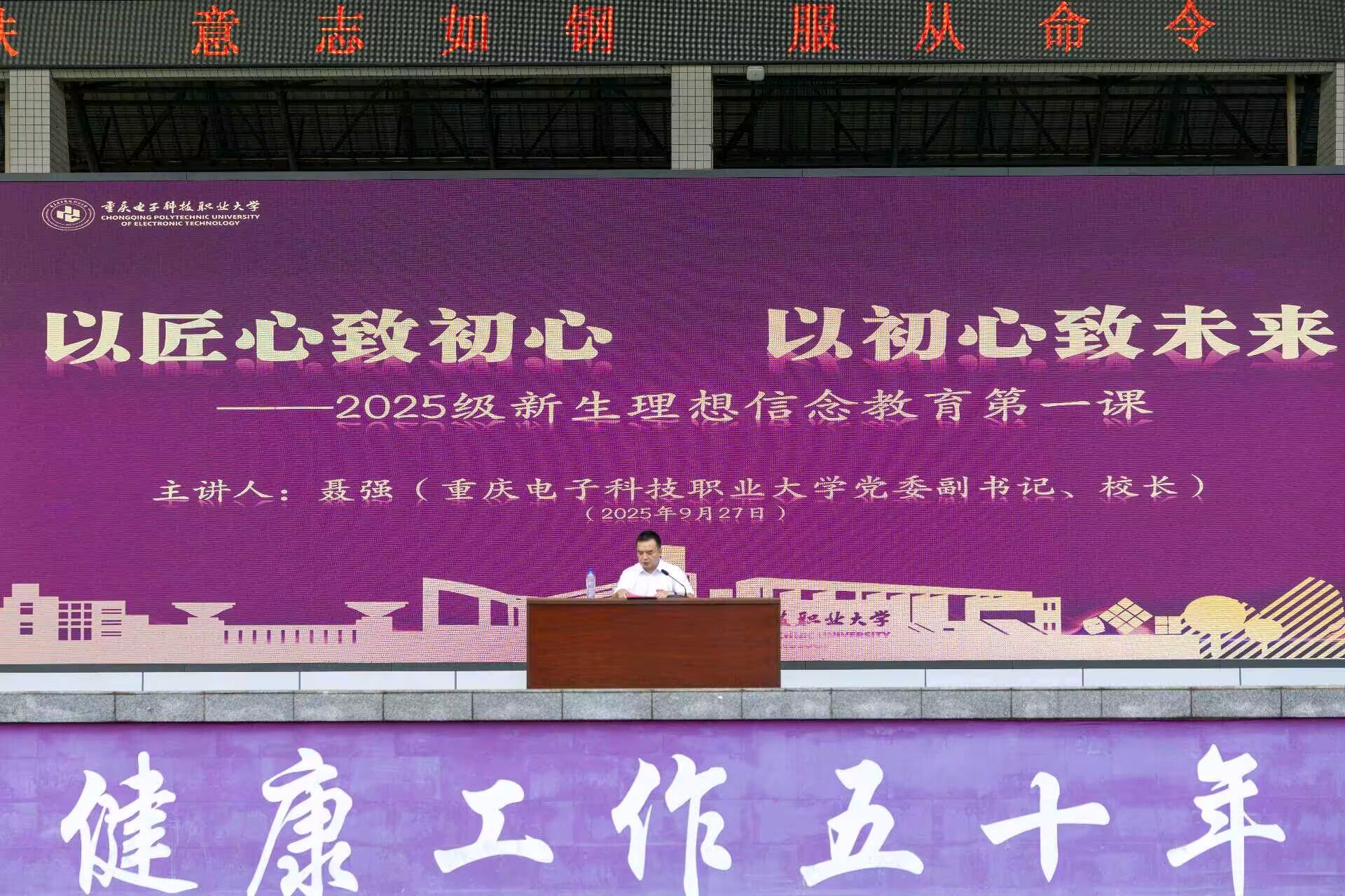 9月27日,重庆电子科技职业大学党委副书记、校长聂强教授,以“以匠心致初心,以初心致未来”为题,在校园为2025级新生带来理想信念教育“第一课”,为新生开启大学新篇章指引方向。