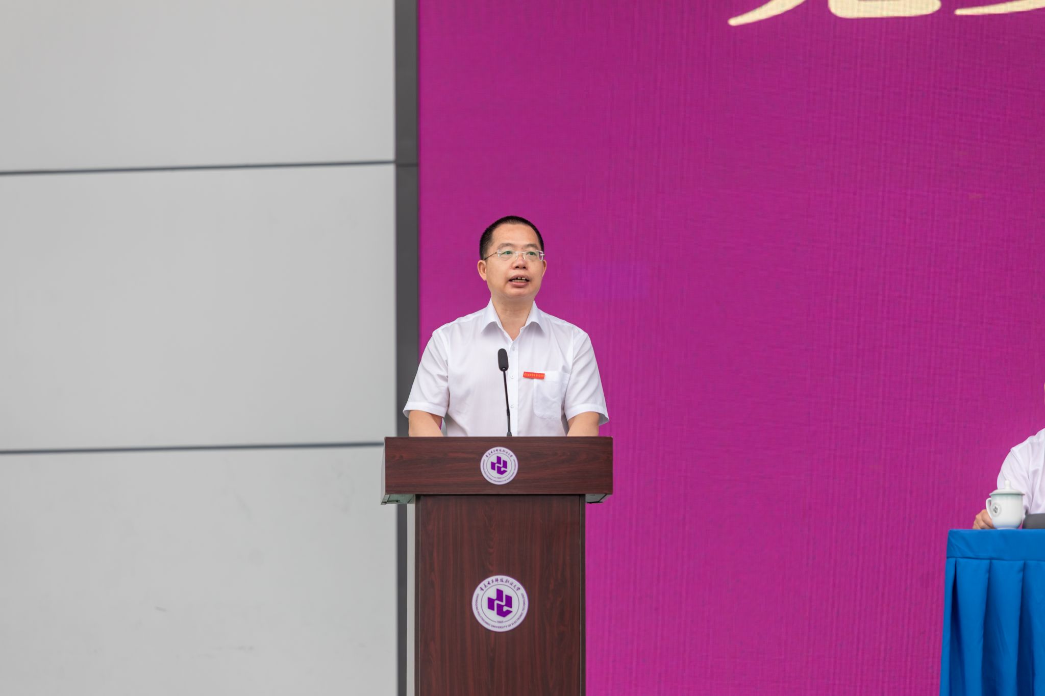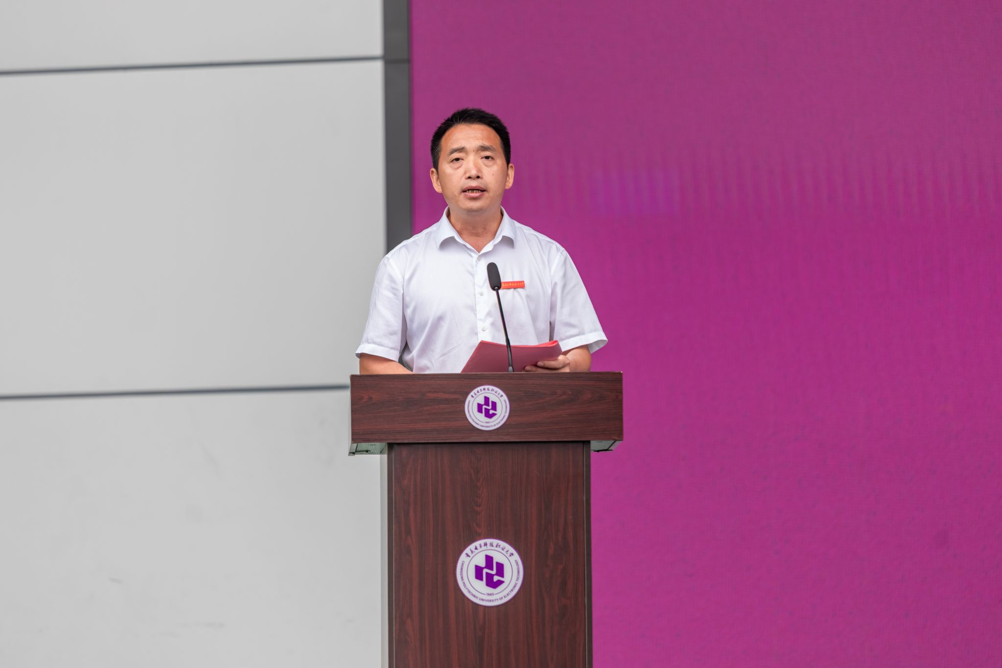 聂强介绍了学校建校六十年来的发展成就与本年度招生情况,着重指出学校在高素质技术技能人才培养方面取得的显著成效。随后,聂强校长与全体新生分享三点思考:一是以“技”为舟,追溯技术文明本源,培养匠心;二是以“德”为舵,坚守职业道德,成为有温度的技术人;三是以“创”为帆,勇于创新,在时代浪潮中突破自我。最后,他祝愿同学们在重电的求学时光中,扎实走好“技进乎道、德润于心”的成长之路。