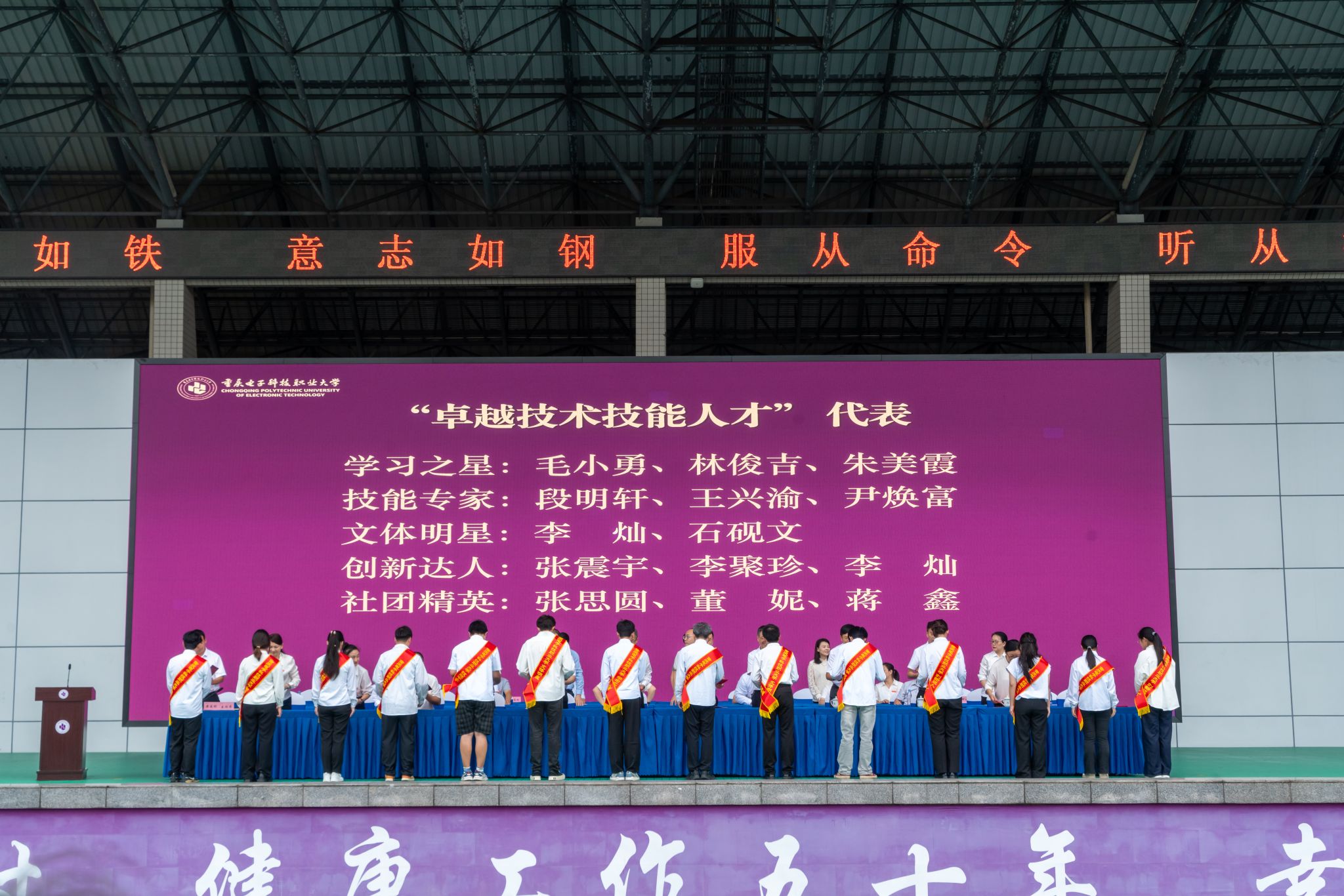 2025年9月30日上午,重庆电子科技职业大学2025年新生开学典礼在大学城校区奕晖运动中心举行,学校官微视频号同步直播。两江新区教学点新生和社会各界人士线上同步观看。学校全体领导、党委常委、各职能部门负责人、各二级学院党总支书记、院长、学管科长、新生辅导员、2025级全体新生及2024-2025学年“卓越技术技能人才”获奖者代表、“国家奖学金”获奖者代表参加了典礼。大会由党委常委、副校长黄爱明主持。