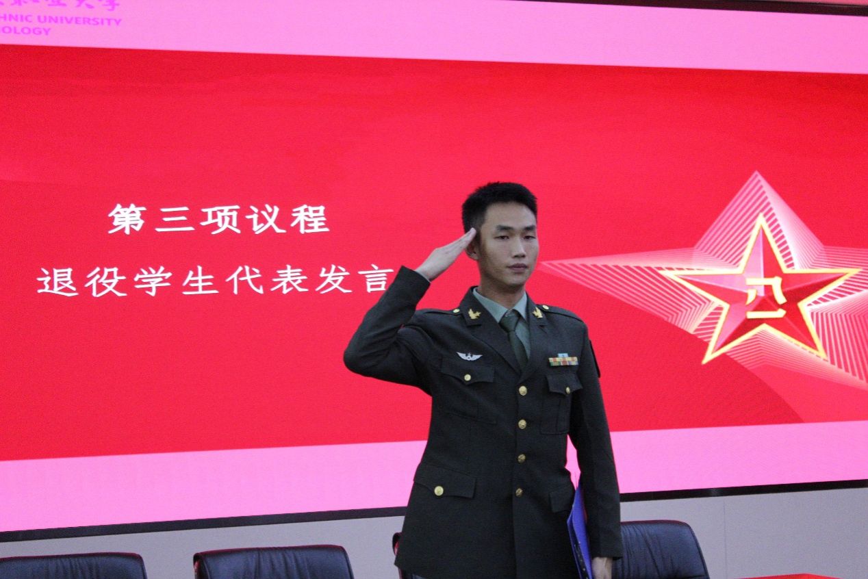 副校长刘洪光代表学校党委行政,向携笔从戎,为国为校争光的29名重电退役学子表达深深的谢意和亲切的关怀,也向39名考入我校的退役学子表达诚挚的欢迎。寄语重电退役复学学子,希望大家发挥军人“退役不褪色”的优良作风,好好学习,成长成为新时代高技术技能型大学生,为国再立新功。