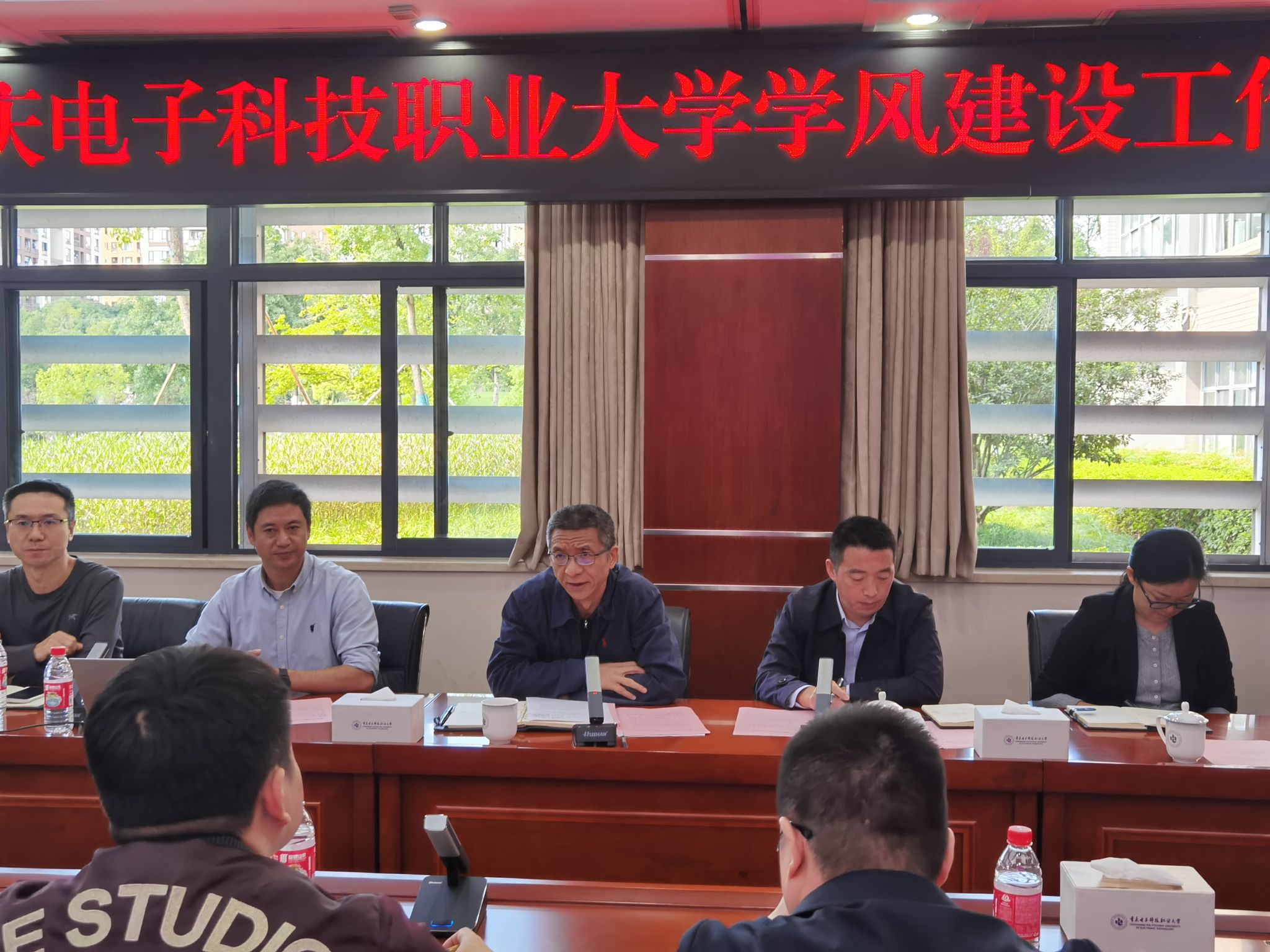 2025年10月23日上午,重庆电子科技职业大学在博润厅举行学风建设工作启动会。会议由副校长黄爱明主持,学校党委书记张伟出席并讲话。各职能部门负责人、二级学院党政负责人、学管科长、团总支书记、全体辅导员及学生代表参加会议。