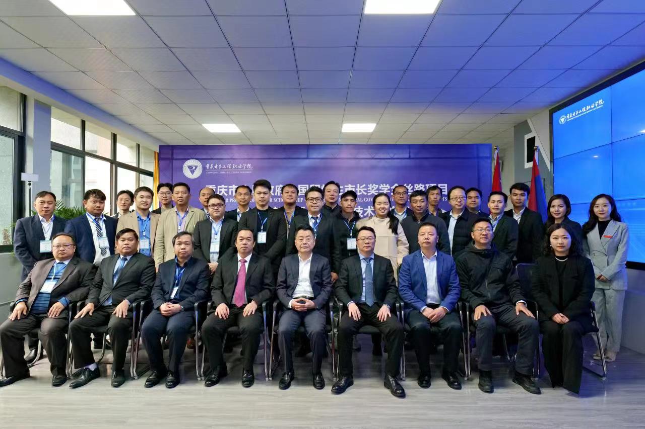 3月27日上午,由重庆电子工程职业学院承办的重庆市人民政府外国留学生奖学金丝路项目——“中老新一代信息技术研修班”正式启动。重庆市教委国际合作与交流处处长李斌,老挝技术通信部智能应用研究院院长菲萨迈先生、老挝国立大学国际合作厅皮马孔厅长,重庆电子工程职业学院党委书记孙卫平、副校长刘洪光、人工智能与大数据学院党总支书记吴炎岷、院长武春岭,老挝国家工商会重庆代表处执行代表费翠,以及来自老挝的21名学员共同出席开班仪式。