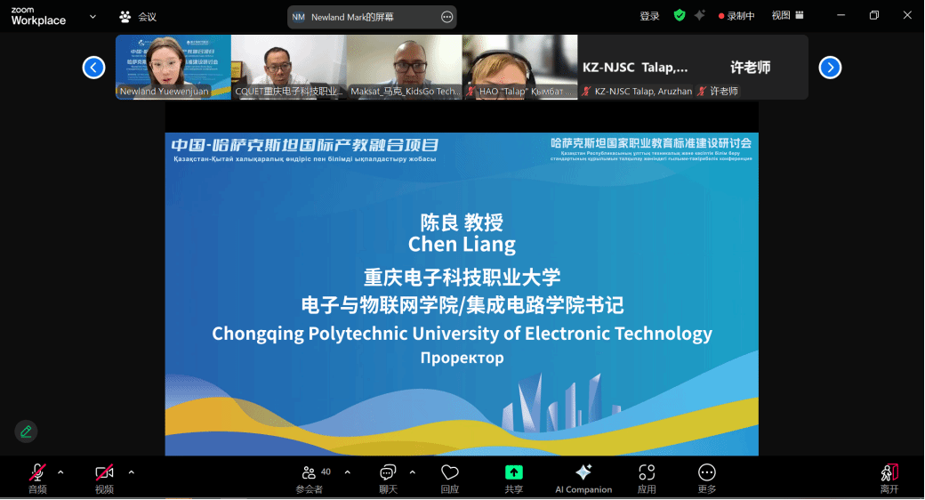 在中方职业院校代表发言环节,我校作为中方职业院校唯一受邀发言单位,由陈良教授发表主题讲话。陈教授指出,中国职业教育在标准建设、课程体系与产教融合方面积累了丰富经验。重庆电子科技职业大学将积极参与中哈职业教育标准研制工作,计划与哈方高校共建专业标准、联合开发课程、开展教师培训及学生互访,打造中哈职业教育合作的示范样板。